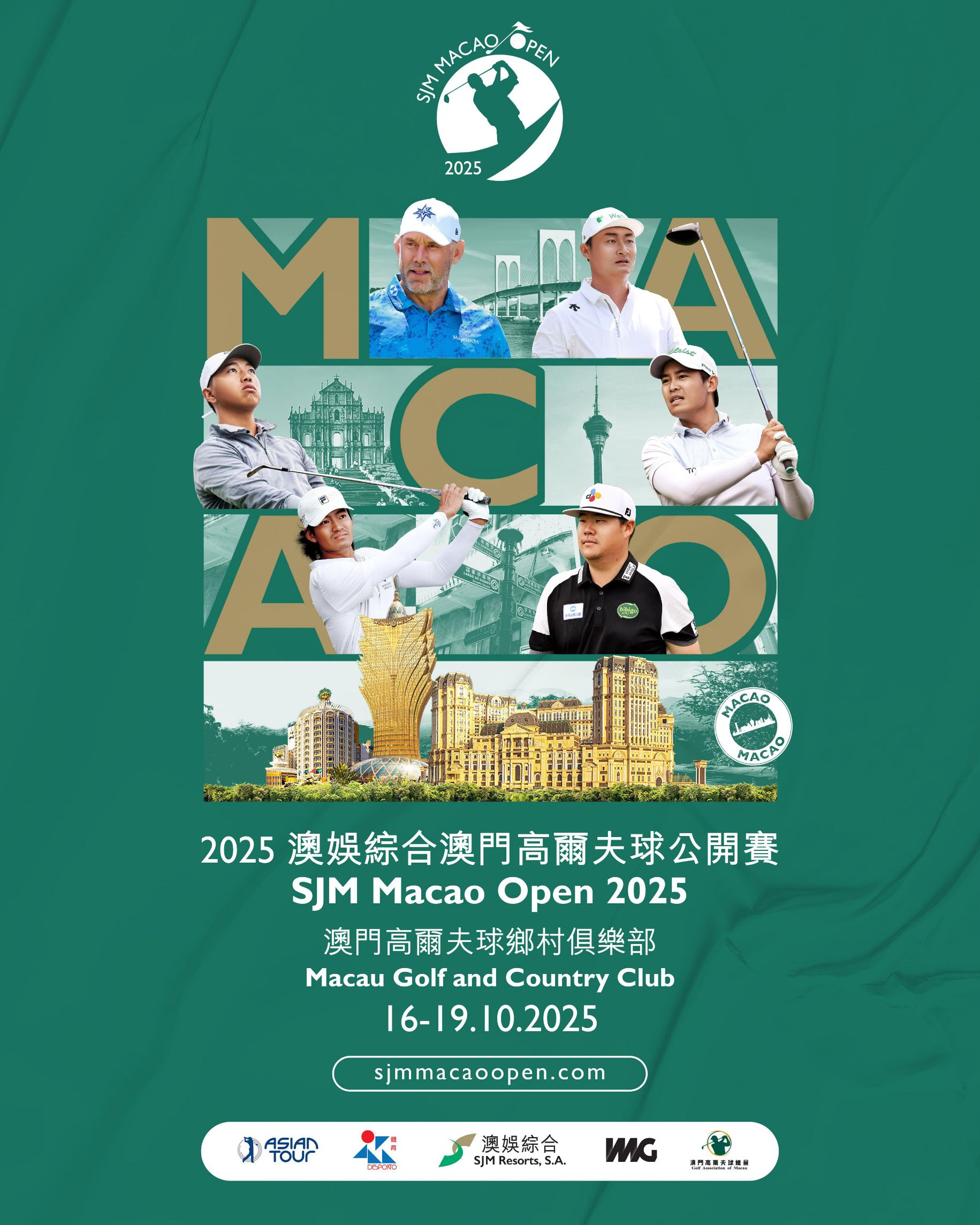 การแข่งขันกอล์ฟรายการ เอสเจเอ็ม มาเก๊า โอเพ่น จัดขึ้นโดยสำนักงานกีฬาเขตบริหารพิเศษมาเก๊าแห่งสาธารณรัฐประชาชนจีน (เอ็มเอสบี) ร่วมกับเอสเจเอ็ม รีสอร์ท, เอส.เอ. (เอสเจเอ็ม) ผู้สนับสนุนหลัก พร้อมด้วยไอเอ็มจี, เอเชียนทัวร์ และสมาคมกอล์ฟมาเก๊า ชิงเงินรางวัลรวม 1 ล้านเหรียญสหรัฐ หรือประมาณ 32 ล้านบาท ระหว่างวันที่ 16-19 ตุลาคมนี้ โดยมีนักกอล์ฟชั้นนำจากทั่วโลก 144 คน ตบเท้าเข้าร่วมแข่งขัน