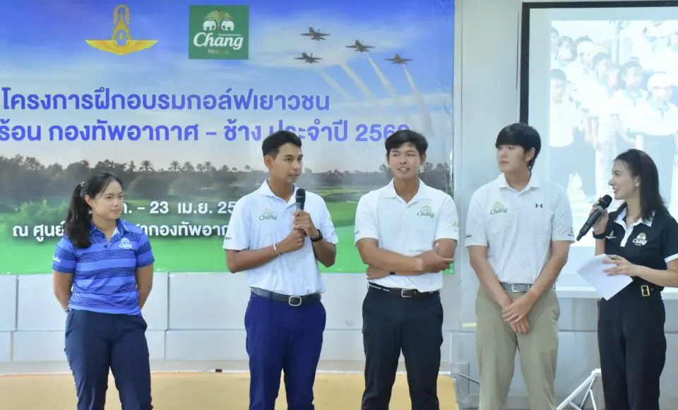 ด้าน คุณภาสวร ปีตรังสี ผู้จัดการอาวุโส โครงการกีฬาเพื่อความเป็นเลิศ ไทยเบฟ ไทยทาเล้นท์ บริษัท ไทยเบฟเวอเรจ จำกัด (มหาชน) โดยน้ำแร่ธรรมชาติตราช้าง กล่าวว่า “น้ำแร่ธรรมชาติตราช้าง มุ่งมั่นสนับสนุน และยกระดับวงการกอล์ฟไทยอย่างยั่งยืน ผ่านการสร้างและพัฒนานักกอล์ฟตั้งแต่ระดับเยาวชนสู่โปรกอล์ฟระดับอาชีพ พร้อมร่วมกับ “ศูนย์ฝึกสอนกอล์ฟเยาวชนกองทัพอากาศ” จัดโครงการฝึกอบรมกอล์ฟเยาวชนภาคฤดูร้อน “ช้าง – กองทัพอากาศ” ต่อเนื่องเป็นปีที่ 18 พร้อมมอบเงินสนับสนุนจำนวน 600,000 บาท เพื่อให้ศูนย์ฝึกฯ นำไปใช้ในการพัฒนาและฝึกอบรมเยาวชนในทุกปี ตลอดระยะเวลาที่ผ่านมา
