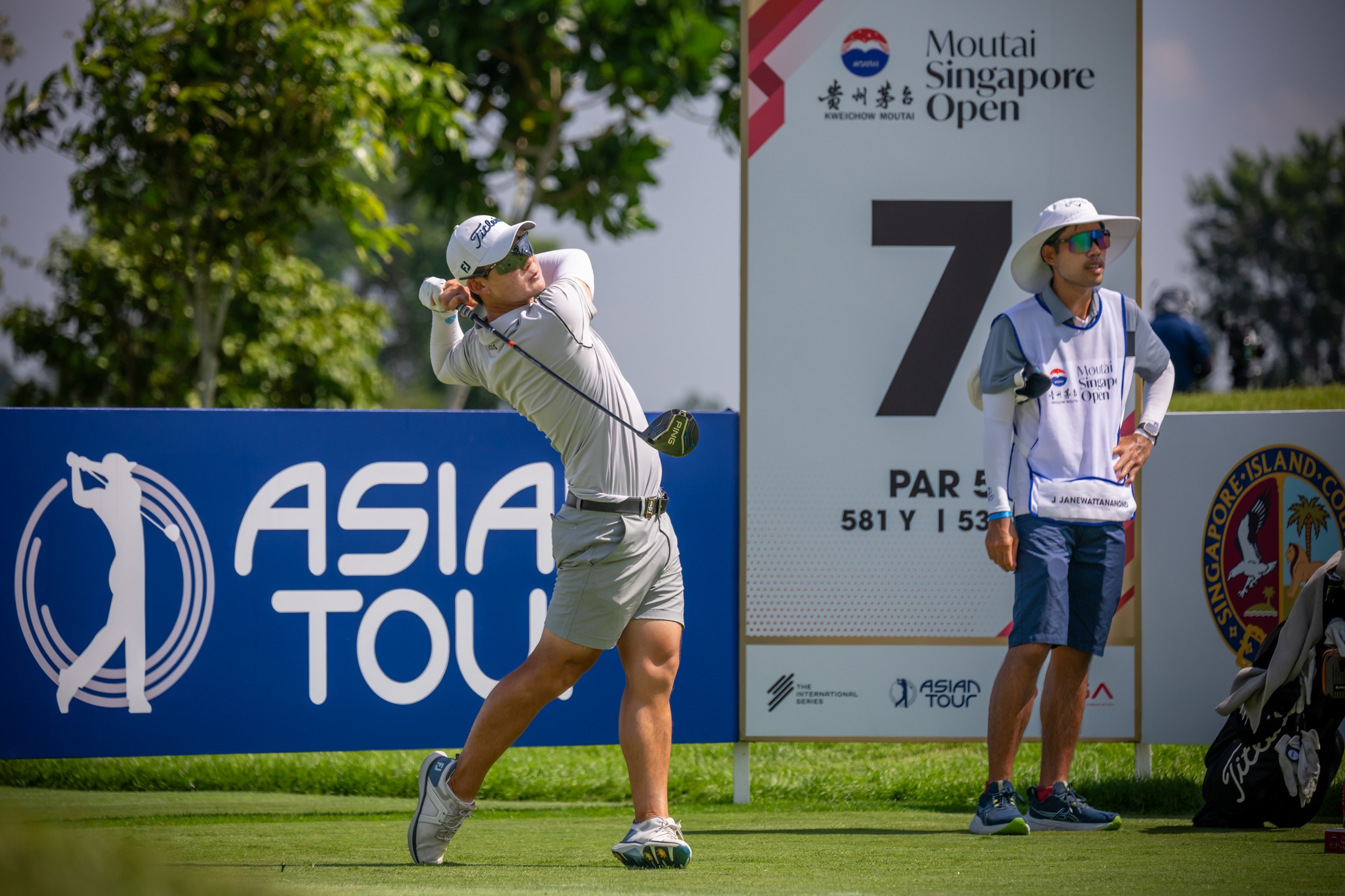 โปรแจ๊ส-อติวิชญ์ เจนวัฒนานนท์ อดีตมือหนึ่งเอเชียน ทัวร์ ปี 2019 หวดเพิ่มอีก 4 อันเดอร์พาร์ 68 ขยับขึ้นมาอยู่อันดับ 6 ร่วม ด้วยสกอร์รวม 13 อันเดอร์พาร์ 203 หลังจบรอบสามของการแข่งขัน “เหมาไถ สิงคโปร์ โอเพ่น” ที่สนามสิงคโปร์ ไอแลนด์ คันทรี คลับ เมื่อวันที่ 8 พฤศจิกายนที่ผ่านมา โดยมีสกอร์ตามหลังสามผู้นำร่วมสองสโตรค (ภาพ: Asian Tour)