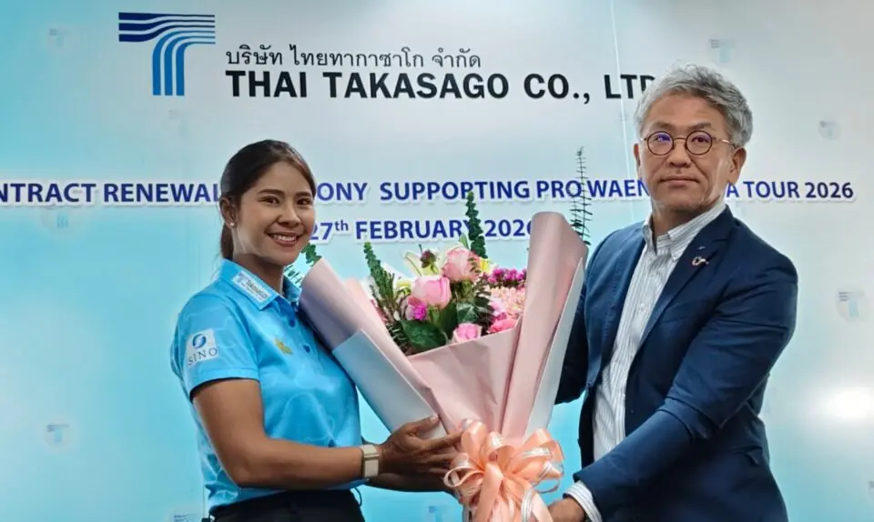 บริษัท ไทย ทากาซาโก จำกัด ผู้นำด้านเทคโนโลยีระบบปรับอากาศและระบายอากาศที่ทันสมัยและมีประสิทธิภาพสูงสุด ได้ประกาศความภาคภูมิใจในการสนับสนุน “โปรแหวน” พรอนงค์ เพชรล้ำ นักกอล์ฟสาวชื่อดังจากชัยภูมิ ในการลงแข่งขันฤดูกาลปี 2026 ต่อเนื่องเป็นปีที่ 8 ได้รับเกียรติจาก คุณ มิซึชิ ทาวาราย่า กรรมการผู้จัดการ บริษัท ไทยทากาซาโก จำกัด เป็นประธาน พร้อมด้วย “โปรแหวน” พรอนงค์ เพชรล้ำ และ “โปรวาว” พรพงษ์ เพชรล้ำ พี่ชายร่วมเป็นสักขีพยานในการลงนามครั้งนี้ด้วย ณ สำนักงานใหญ่ อาคารบางนาทาวเวอร์ เมื่อวันศุกร์ที่ 27 ก.พ. 2569